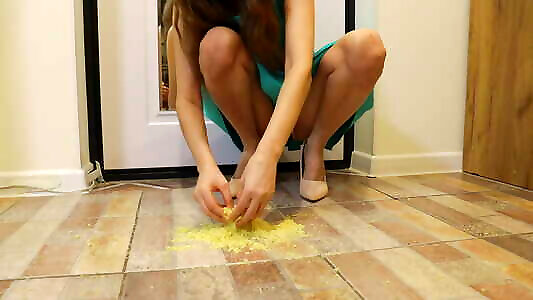 Crushing food on accideantal creampie in sister Heels. Foot Fetish.