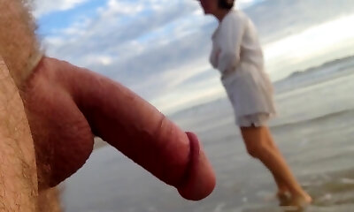 Public erection CFNM beach encounter between nymph and male exhibitionist