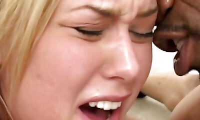 With a Ball-gag In Her Mouth, a Curvy Buxom Towheaded Sadism & Masochism-lover Lets Humungous BBC Smash Her Asshole