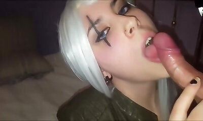 Julia is the goddess spit doing a filthy blowjob