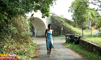 Shameless tart Lucy Lauren flashes her pussy and tits on first encounter