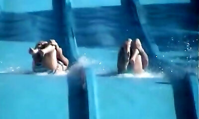स्नान सूट-कपड़े पहने बेब के साथ एक अच्छा शरीर का आनंद ले रहे एक कट्टर गधा भाड़ में जाओ