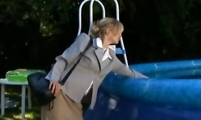 Granny fucks the POOLBOYS and gets a Juice PIE