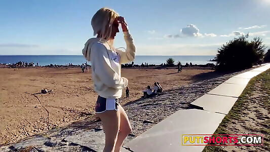 Sizzling Light-haired Teen in a Bathing Suit Likes Being Observed Wanking