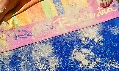 On the beach, my friend's sonnie films me putting on a swimsuit and masturbates