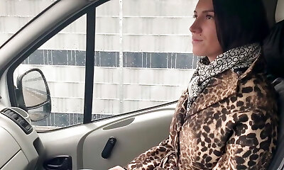 Exhibitionist slut drains in the car