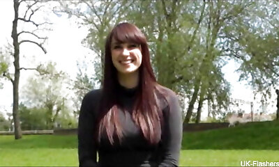 British cutie ejaculating in public at UKFlashers
