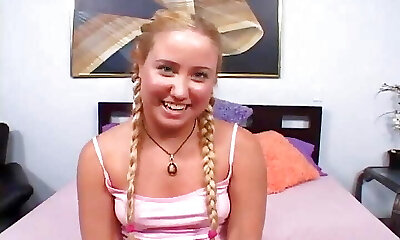 गड़बड़ युवा सुनहरे Shione प्रहार एक नकली लंड