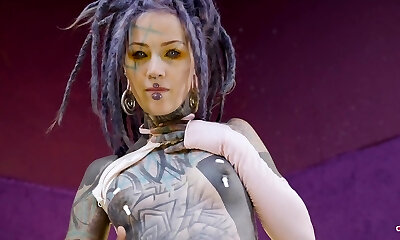 ऑफेनबैक (जर्मनी)में एक वयस्क थिएटर में पूर्ण शरीर टैटू एमआईएलए क्लियो