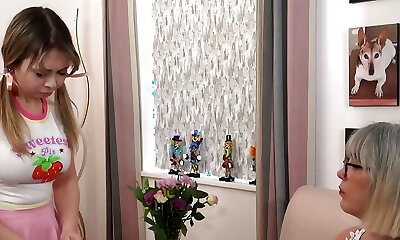 सींग का बना हुआ सौतेली बहनों के साथ उनके डिल्डो जबकि कोई और घर नहीं है