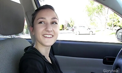 प्रेमिका देता है कार मुखमैथुन और निगल-मौखिक नौकरी