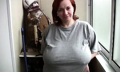 Huge-titted hirsute girl masturbates