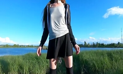Stunning German teenie loves pissing in the outdoors after shaving her mans cock