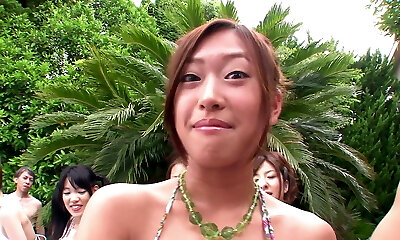 Cock hungry Japanese cuties take spunk-pumps in their mouths during a party