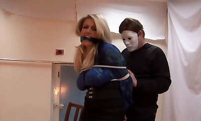 Richard Nailder spanks a roped Mystic Monroe's teen pussy before making her suck his cock