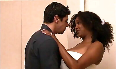 Chubby black bitch with the thickest cup size Rachel Raxxx is fucked by white guy